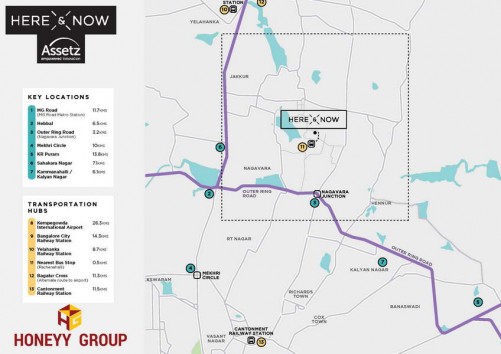 Assetz Here & Now IA Spread across 3 well-planned acres, and located a mere 500 metres away from Manyata Embassy Business Park is Here and Now. A modern, urban space that is designed to complement global lifestyles. It incorporates innovative, smart design to give its denizens a space that is impressively crafted to echo the philosophy and energy of here and now. The structure, the space and the facilities are all created keeping in mind the high-energy buzz of modern metropolis living. There are WiFi zones, cluster areas for getting together, a range of amenities, ample open spaces to find a quiet corner, and 384 homes that offer you a range of living styles - from smart, compact studios to comfortable 1- and 2-bedroom-apartments. All surrounded by an innovative, distinct and uber-modern vibe.
