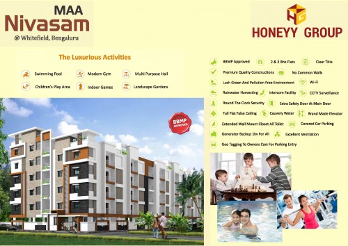 If you are not the one to be sidelined, and enjoy an elegant BBMP Approved 2 & 3 Bhk Flats Clear Title lifestyle in stylish surroundings, this one is for you. Located in the heart of the city at Hoodi, Whitefield, Maa Nivasam puts you in the centre of it all. With broader perspectives and mainstream lifestyle, the project rewards its residents every step of the way.
