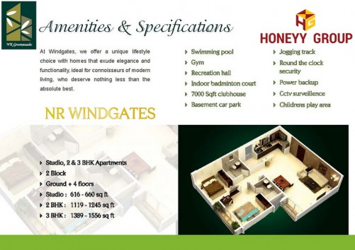 NR Windgates is one of the residential developments of NR Greenwoods. It offers spacious and skilfully designed 1RK, 1BHK, 2BHK and 3BHK apartments. The project is well equipped with all the basic amenities to facilitate the needs of the residents.