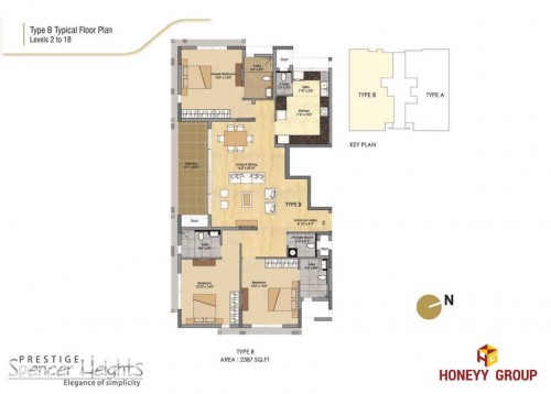 Spencer Heights residential apartments come with all the amenities that your lifestyle demands, making it a rational and perfect choice. With spacious 3 bedroom luxury homes in a Single Tower of Eighteen Storeys, Prestige Spencer Heights presents an address that will be coveted by all and owned only by a privileged few.