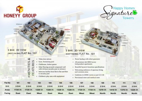 Happy Home Signature Towers comes up with luxurious apartments with covered car parking, lift, excellent interiors, spacious rooms and with world class fittings. Each apartment is carefully crafted with ample ventilation. The 3BHK storey tower house and 2BHK bedroom apartments that come with state-of-the-art amenities that truly make it a world class home.