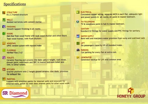 S R Diamond, a new premier residential Apartment Project located at Pragati Nagar, Hyderabad. This Apartment has sizes of 2BHK with East facing, 2BHK with North facing, in total Built up area of 1171 to 1232 SFT. It is a Standalone project spread over an area of 400 SQYDS Land area with total 4 Floors. This Apartment is in stage of Plastering Work (4/10) with ample of 25% Open Space Area, 25% common area. This project is approved by GHMC