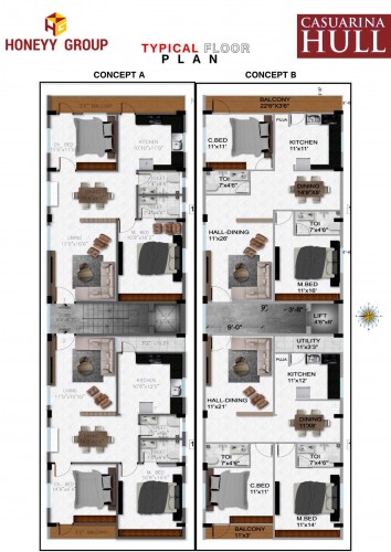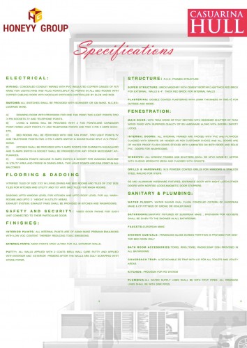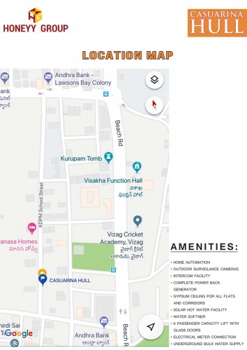 Casuarina Hull is a G+4 construction and spacious 2BHK flat with 1200 SFT is available for sale at Beach Road, Visakhapatnam. this west facings property promises complete privacy and it is designed to give you the freedom to grow, flourish and enjoy a lifestyle in an environment which spells class in every square foot. this property is well connected to other part of the city.