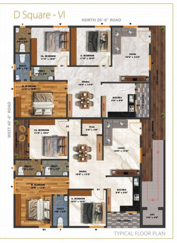 D Square 6 is an exclusive residential project located in Madhavadara VUDA Colony, just behind More Supermarket, offering a perfect blend of privacy and modern living. Developed as a G+4 apartment with only 2 flats per floor, the project consists of just 10 premium units, ensuring a peaceful and low-density lifestyle. Each home is a spacious 3BHK of 1400 sq. ft., designed with East-facing orientation for ample natural light and ventilation. Spread across a 333 sq. yards site area, the project includes essential amenities and quality construction. With possession in 12 months, it is ideal for families seeking a well-connected and serene residential environment.