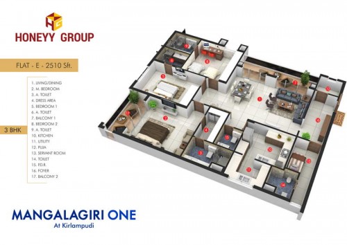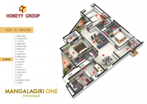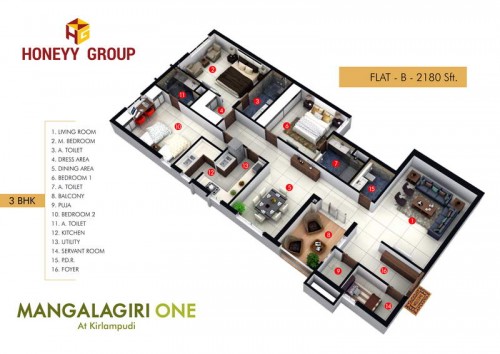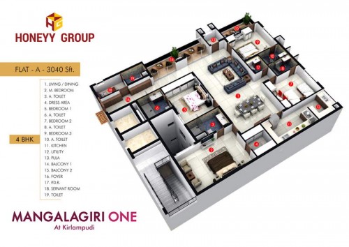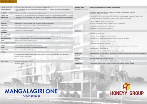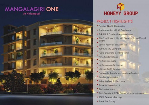 Mangalagiri One is located at Pedda Waltair in Visakhapatnam, it offers luxurious 3 and 4 BHK apartments for sale. The project is currently in an under-construction stage and the apartments are available in the size ranging from 2,180 sq ft to 3,040 sq ft. The mode of availability is only through the developer. It offers numerous amenities which include a well-equipped gymnasium, a swimming pool, a clubhouse, an intercom facility, a 24*7 security system, landscaped gardens, an indoor games facility and a car parking area. All the apartments are Vastu compliant. Pedda Waltair offers smooth connectivity to different parts of Visakhapatnam through an integrated network of road and rail. The neighborhood has the essential social infrastructure including leading educational institutions, shopping malls, reputed hospitals, bank branches, and ATMs.