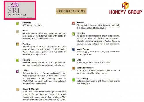 Siri Nivasam is coming up with beautiful flats having abundant space and soothing interiors. Each apartment is being built with choicest flooring and fittings. These elegant apartments are coming up for those who needs everything best in their life. Offered in a range of 2 BHK and 3 BHK, these are built with top branded floorings and fittings.