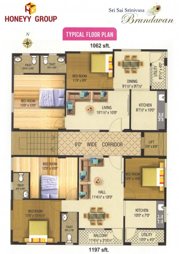 The Value for this home is around 39 Lac. Sri Sai Srinivasa Brundavan is a 3 bedroom apartment located in Kommadi. The Home features 3 furnished bathroom and has 2 airy balconies. It is on 2 level from 5 floors in the tower and is also spacious enough for a family. It offers an area of 1197 Sq-ft.