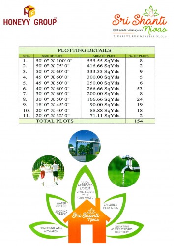Sri Shanthi Nivas is a kind of project Located at Duppad, Vizianagaram. It's a Gated people group with Grand passage curve spread on a territory of 50 sections of land, which will offer premium plots, extravagance free estates, and business spaces. It's a VUDA affirmed Layout.