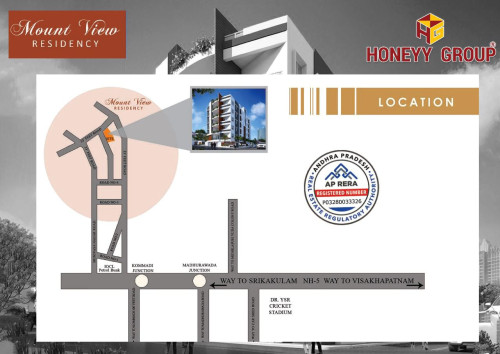 **Mount View Residency** is a modern residential project located in the fast-developing area of Kommadhi, offering a perfect balance of comfort and convenience. Designed as a G+4 apartment, the project features well-planned 2BHK and 3BHK homes in 1060 and 1360 sq. ft., suitable for families of all sizes. With North and South facing options, the apartments ensure excellent ventilation and natural light. Built with quality construction and equipped with essential amenities, this ready-to-move-in project provides a peaceful lifestyle with easy access to schools, hospitals, and daily essentials.